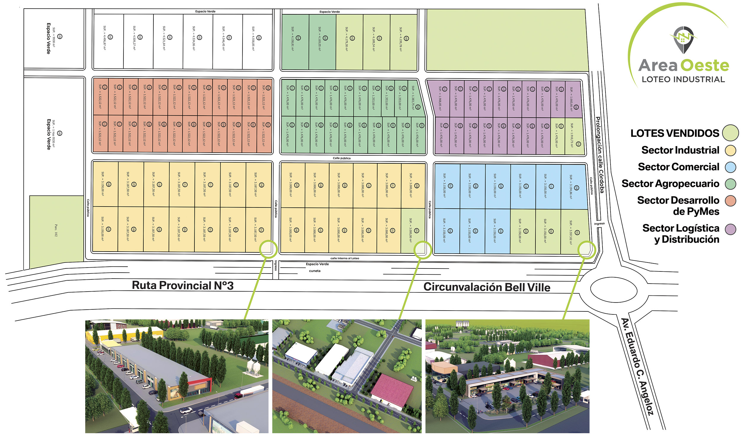 Area Oeste es un loteo proyectado para convertirse en un parque industrial, comercial y de servicios ubicado en Bell Ville, Córdoba, Argentina, a pasos de la autopista Buenos Aires / Córdoba, en pleno corazón productivo del país, a 200 km de Rosario y Córdoba.